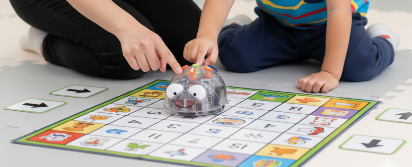 Blue-Bot 課程使用教育機器人,專注培養兒童的編程、邏輯思維及空間認知能力。課程透過機身按鍵或藍牙連接 App/卡片閱讀器輸入指令,讓學生以 Step-by-Step 的方式,學習序列、迴圈等程式基本概念。