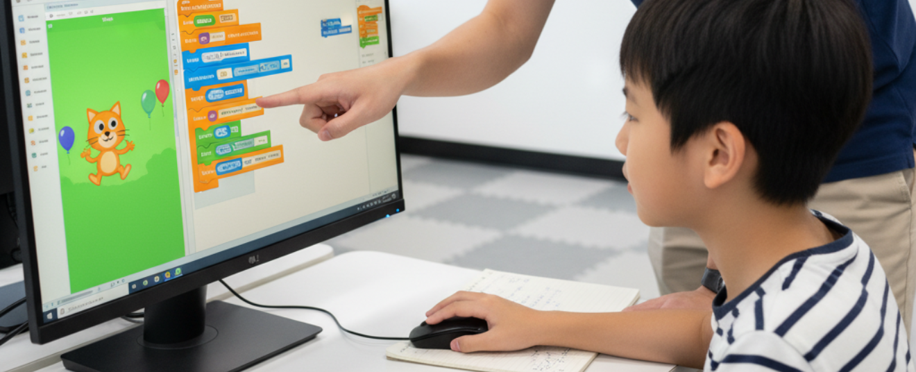 課程透過 Scratch 圖像介面及方塊組合 形式,讓學生輕鬆編寫程式,擺脫文字指令的沉悶。課程強調快速上手,透過遊戲實作,有效培養學生的邏輯思維、創意與問題解決能力。