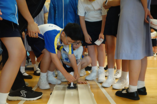 讓學生親身體驗氫能應用,操控遙控車挑戰設有坡道的賽道,考驗學生精準控速及靈活操控繞過賽道上的障礙物為目標,以最短時間通過終點為勝利